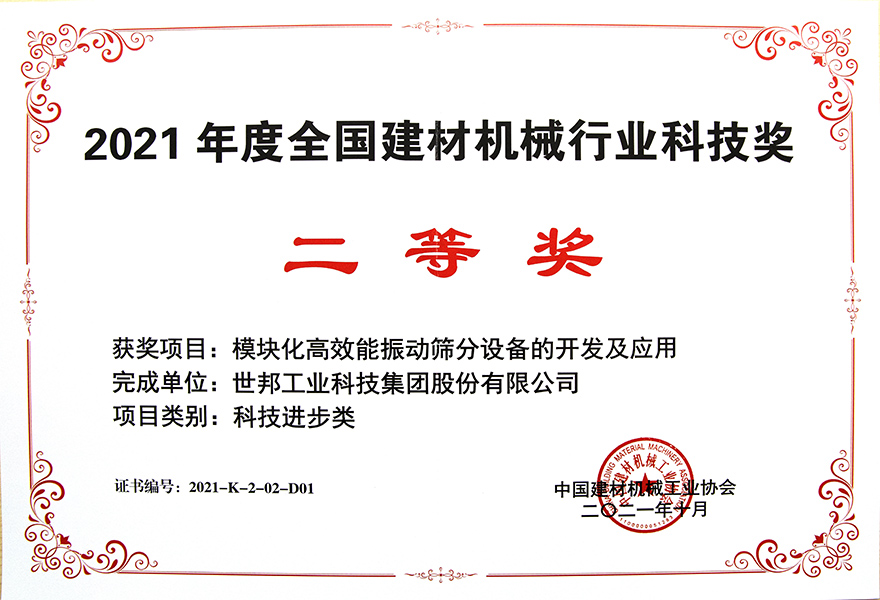 2021年度全國建材機械行業(yè)科技獎二等獎