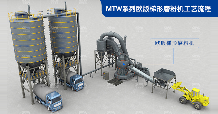 合適粒度的原料,經(jīng)過(guò)裙邊皮帶給料機(jī)連續(xù)均勻的送入主機(jī)進(jìn)行研磨,被粉磨后的細(xì)粉在風(fēng)機(jī)氣流的作用下送至分級(jí)機(jī)分級(jí),達(dá)到合格細(xì)度的細(xì)粉經(jīng)過(guò)分級(jí)機(jī)進(jìn)入出風(fēng)管道進(jìn)入收集階段。