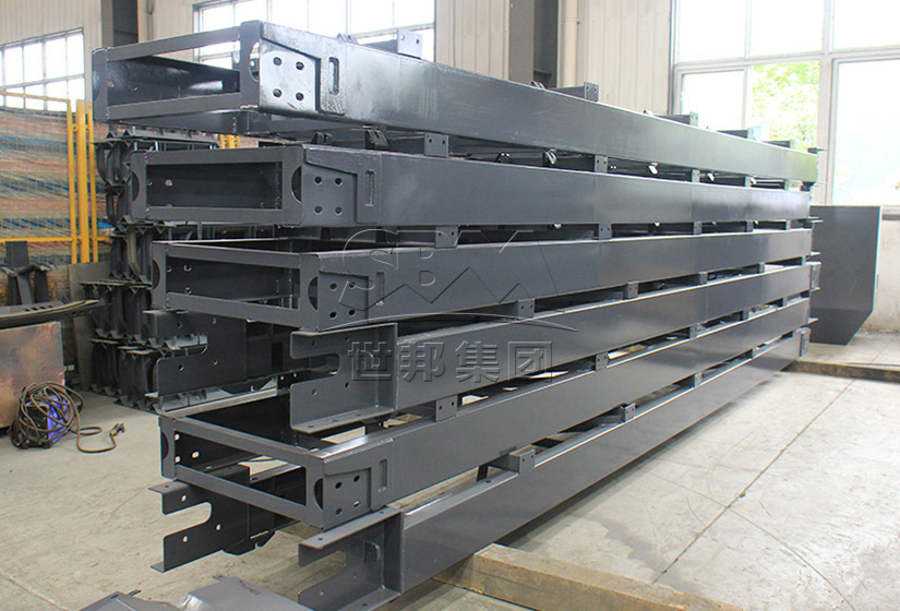 傳統(tǒng)皮帶機(jī)一般使用槽鋼和托輥架搭配使用,機(jī)架相對(duì)單薄。而B6X皮帶機(jī)在這一點(diǎn)上做了變革——使用C型鋼代替了槽鋼并配備側(cè)護(hù)板,基于這個(gè)改進(jìn),B6X系列皮帶機(jī)機(jī)架總體鋼性得以大大提升。
