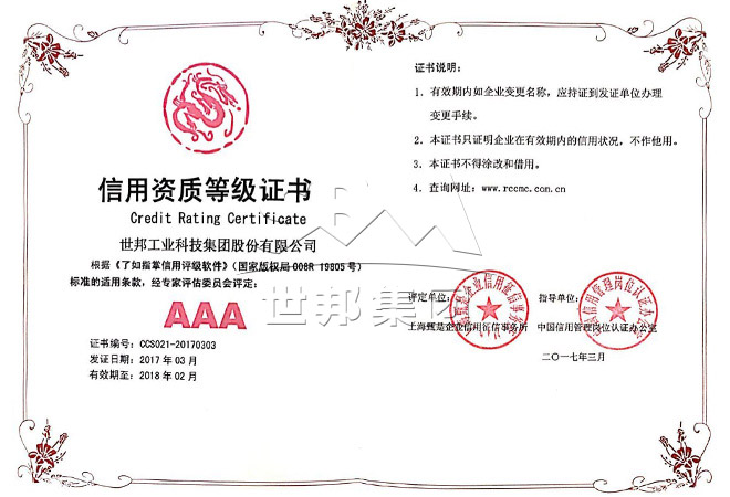世邦信用資質(zhì)等級證書