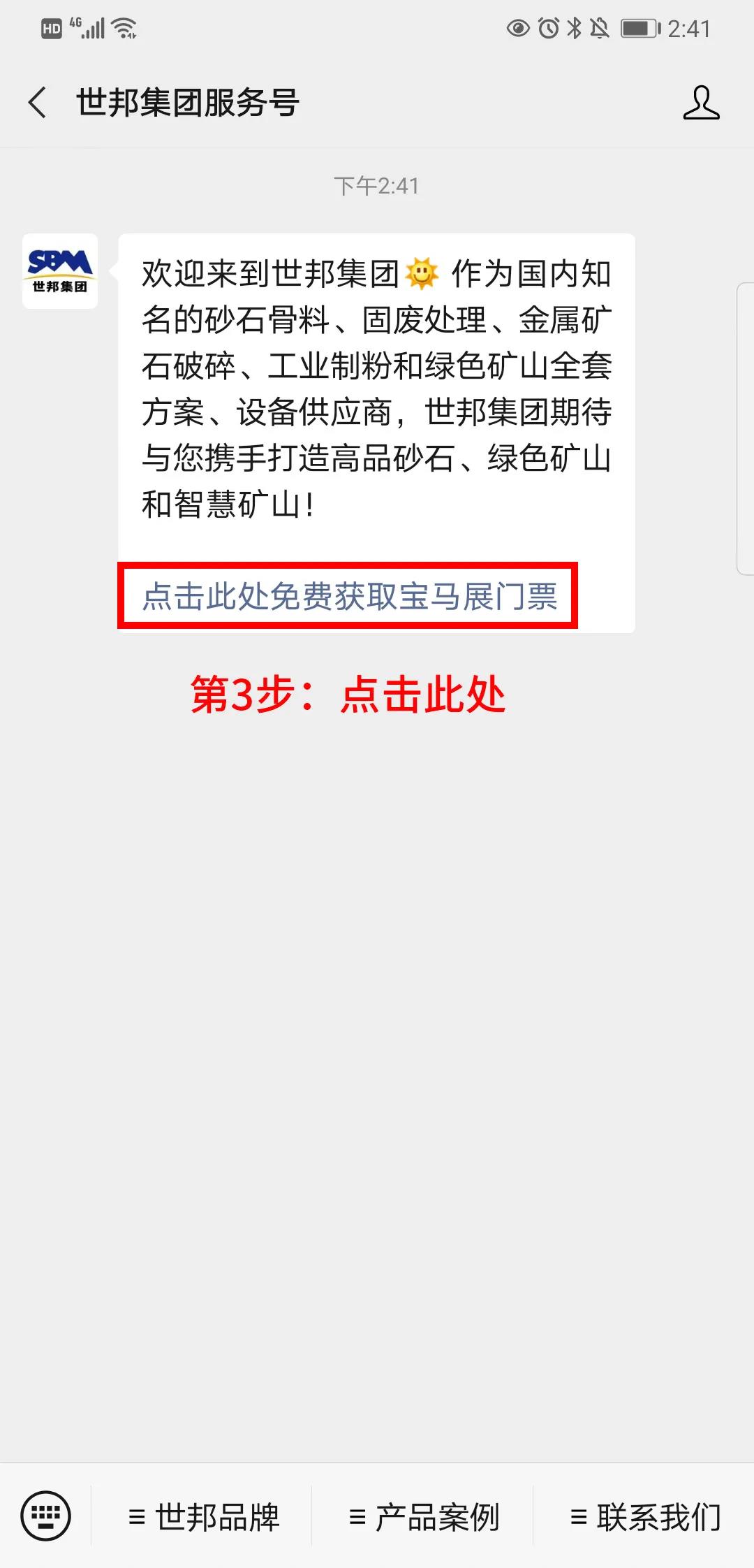 3. 收到自動回復消息,【點擊免費獲取寶馬展門票】