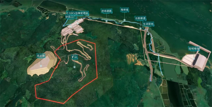 中電建陽西項(xiàng)目是陽江地區(qū)頭等綠色礦山建材項(xiàng)目,是集開采、運(yùn)輸、加工和銷售一體的綠色建材基地,也是“建設(shè)、生產(chǎn)、運(yùn)營、修復(fù)”全產(chǎn)業(yè)鏈一體化項(xiàng)目。項(xiàng)目建設(shè)規(guī)模大,資源儲(chǔ)量約2億噸,建設(shè)總投資約52億元,主要由礦山開采、砂石工廠、長(zhǎng)距離運(yùn)輸廊道三大部分組成,配套重量級(jí)港口碼頭。此外,項(xiàng)目地理位置優(yōu)越,地處大灣區(qū)、北部灣城市群和海南自貿(mào)港三大國家戰(zhàn)略的交匯地帶,西可到茂名、湛江,東可達(dá)江門、珠海,項(xiàng)目投產(chǎn)后或可通過海運(yùn)輻射粵港澳大灣區(qū)主要中心城市及東南亞市場(chǎng)。