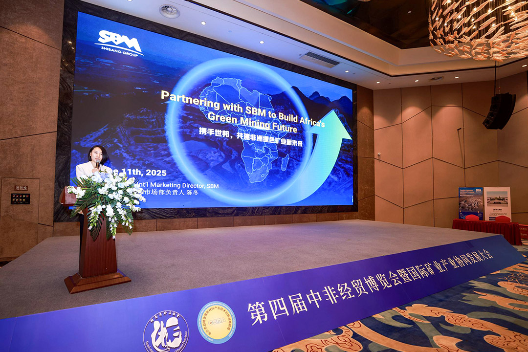 憑借在骨料生產(chǎn)和礦物加工解決方案方面的卓越能力,以及多年來在國際市場上的精耕細(xì)作,世邦集團(tuán)受邀出席會議并成為本次大會中唯一發(fā)言的礦業(yè)裝備企業(yè),參會期間世邦集團(tuán)代表與多國參會代表進(jìn)行了深度會晤,并參加多場專題論壇。世邦集團(tuán)國際市場部負(fù)責(zé)人陳冬,于11日舉辦的第四屆中非經(jīng)貿(mào)博覽會暨國際礦業(yè)產(chǎn)業(yè)協(xié)同發(fā)展大會上發(fā)表了題為《攜手世邦,共建非洲綠色礦業(yè)新未來》的英文主題分享。