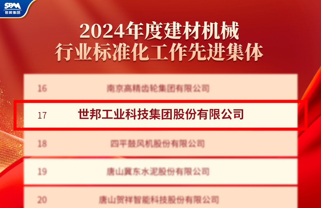 近日,經(jīng)全國建材裝備標(biāo)準(zhǔn)化技術(shù)委員會及國家建筑材料工業(yè)機(jī)械標(biāo)準(zhǔn)化技術(shù)委員會嚴(yán)格評審,世邦集團(tuán)憑借在行業(yè)標(biāo)準(zhǔn)體系建設(shè)中的突出貢獻(xiàn),被授予“2024年度建材機(jī)械行業(yè)標(biāo)準(zhǔn)化工作先進(jìn)集體”稱號。這一榮譽(yù)不僅是對世邦集團(tuán)長期致力于行業(yè)標(biāo)準(zhǔn)化建設(shè)的高度認(rèn)可,更彰顯了企業(yè)在推動行業(yè)規(guī)范化發(fā)展中的示范作用。