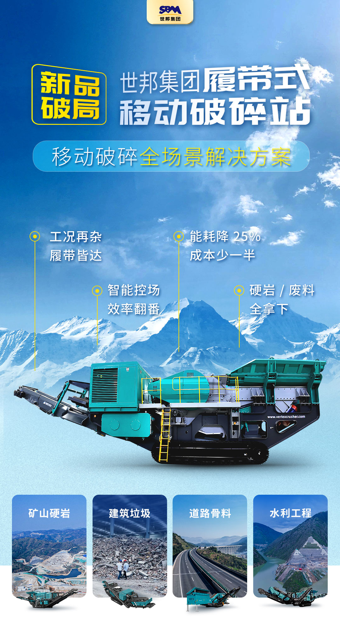 現(xiàn)在咨詢,即可獲取專屬工藝方案,讓世邦集團(tuán)履帶式移動破碎站成為您項(xiàng)目降本增效的 “得力助手”,解鎖破碎作業(yè)的更多可能!