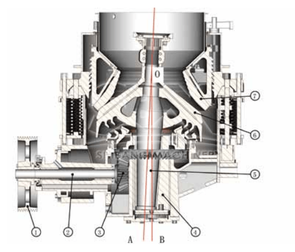 為了防止鐵塊等非破碎物料進(jìn)入破碎腔時(shí)造成破碎機(jī)出現(xiàn)悶車(chē)過(guò)載等突發(fā)情況,我們?cè)贑S圓錐破周?chē)惭b了16組高性能合金鋼彈簧,且以彈簧組為核心的過(guò)載保護(hù)系統(tǒng)能有效保障破碎機(jī)的安全。