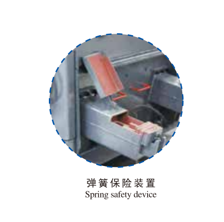 我們在反擊板上大膽采用世邦工業(yè)自主研發(fā)的技術(shù)——恒壓彈簧保險裝置,當非破碎物(如鐵塊)進入破碎腔后,前后反擊架后退,非破碎物自動從機內(nèi)排出,反擊板則復(fù)位并正常工作,進而消除機器卡死的隱患。由于整個過程是自動化完成,大大減少了人工停機清掃維護時間,極大提升了整個生產(chǎn)線的生產(chǎn)效率。