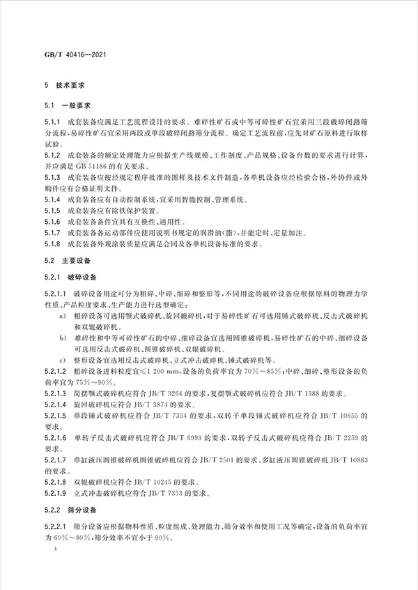 砂石骨料生產(chǎn)成套裝備技術(shù)要求