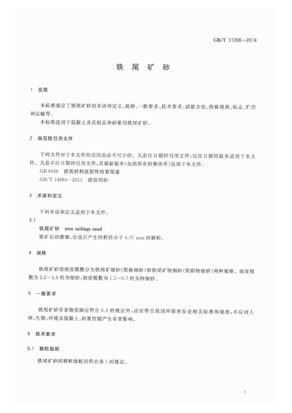 本標(biāo)準(zhǔn)規(guī)定了鐵尾礦砂的術(shù)語(yǔ)和定義、規(guī)格、一般要求、技術(shù)要求、試驗(yàn)方法、檢驗(yàn)規(guī)則、標(biāo)志、貯存和運(yùn)輸?shù)取?/p>