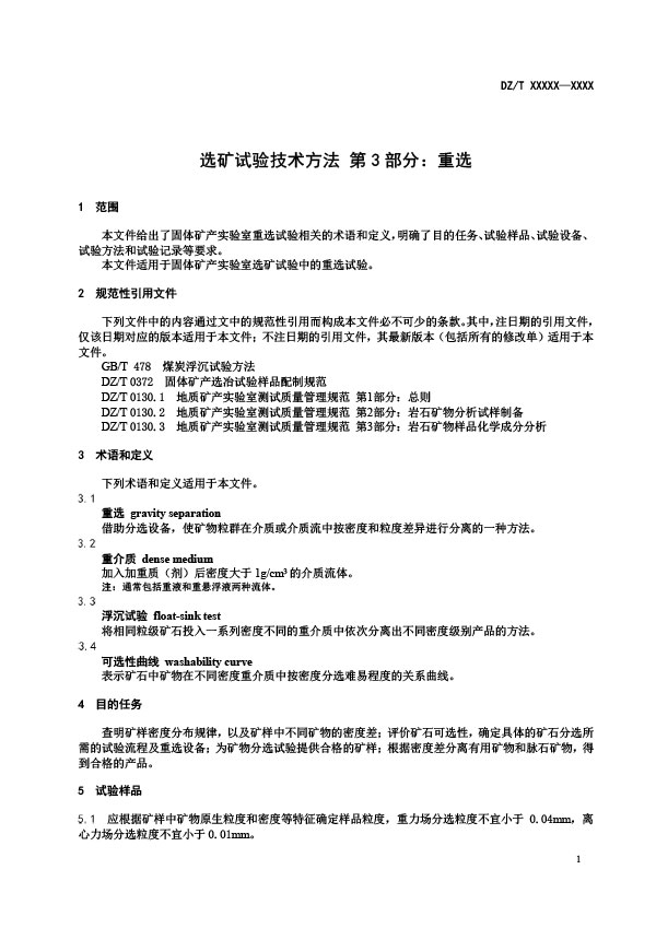 選礦試驗(yàn)技術(shù)方法 第3部分:重選