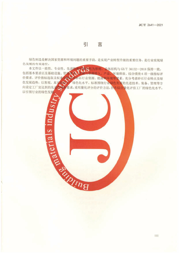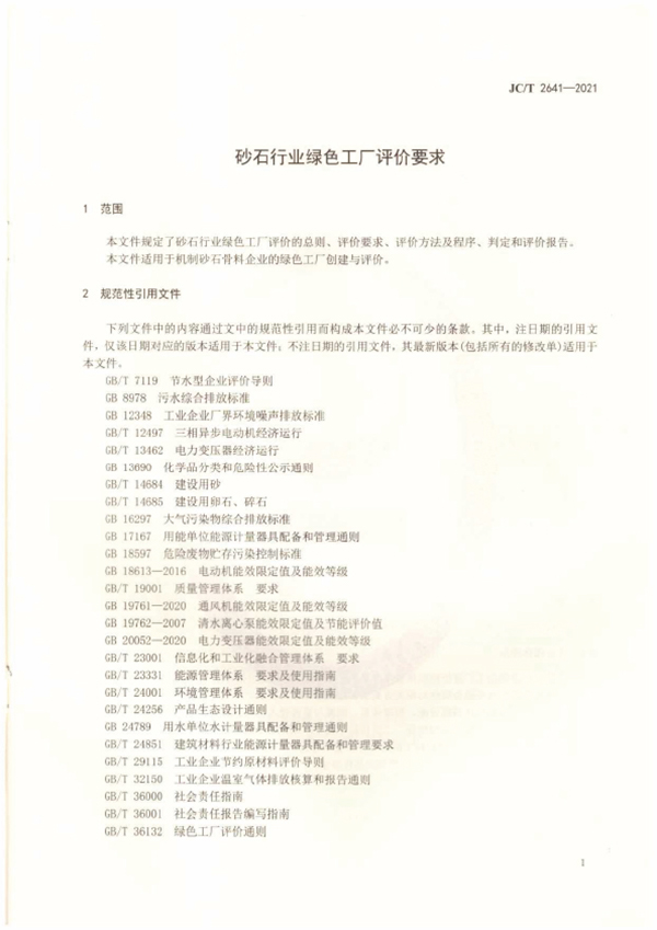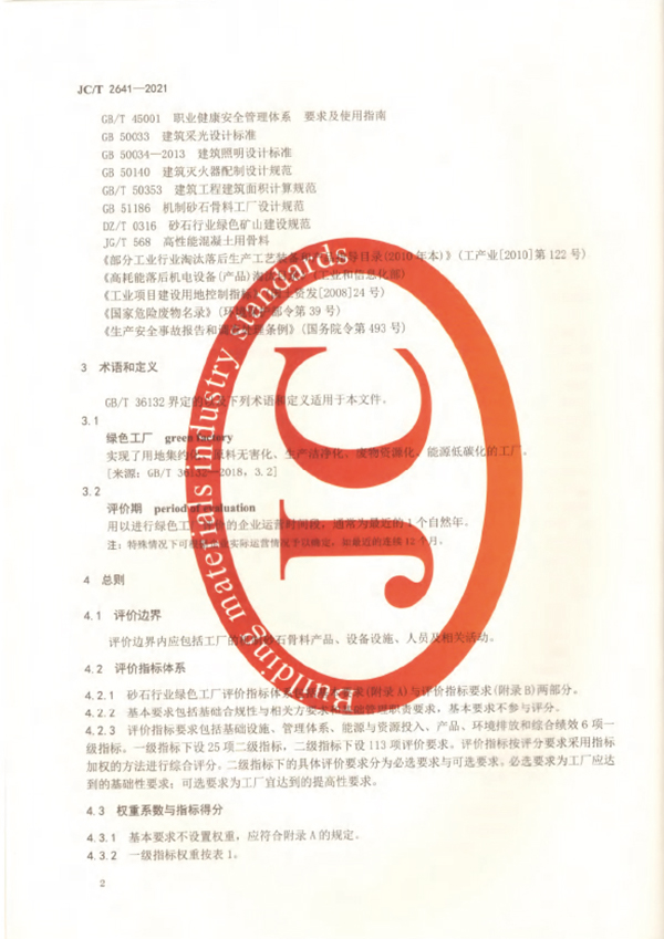 本標(biāo)準(zhǔn)根據(jù)砂石行業(yè)特點(diǎn)及綠色發(fā)展趨勢,以節(jié)能、減排、綠色、低碳為核心,圍繞行業(yè)先進(jìn)技術(shù)、裝備、管理等方向,制定了綜合全面的砂石行業(yè)綠色工廠評價(jià)指標(biāo)體系,適用于機(jī)制砂石骨料企業(yè)的綠色工廠創(chuàng)建與評價(jià)。