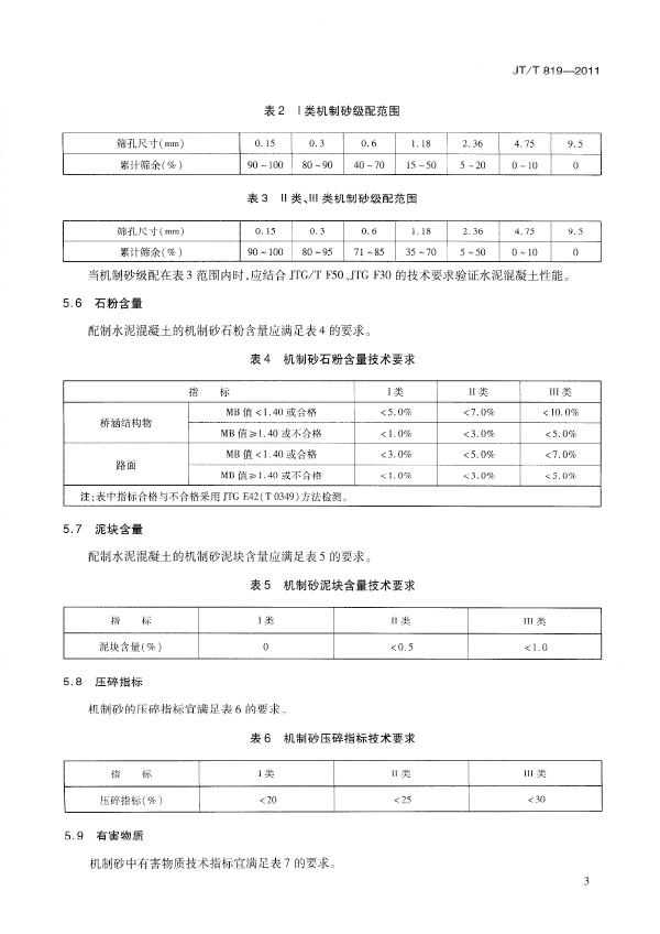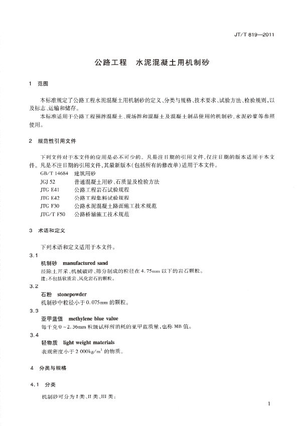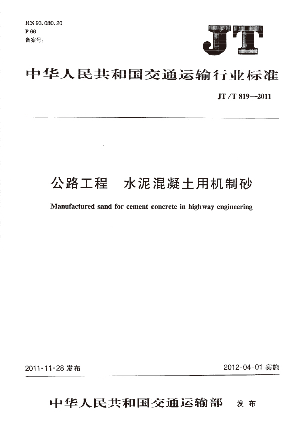 本標(biāo)準(zhǔn)規(guī)定了公路工程水泥混凝土用機(jī)制砂的定義、分類(lèi)與規(guī)格、技術(shù)要求、試驗(yàn)方法、檢驗(yàn)規(guī)則,以及標(biāo)志、運(yùn)輸和儲(chǔ)存。本標(biāo)準(zhǔn)適用干公路工程頂拌混凝土、現(xiàn)場(chǎng)拌和混凝土及混凝土制品使用的機(jī)制砂,水泥砂漿等參照使用。