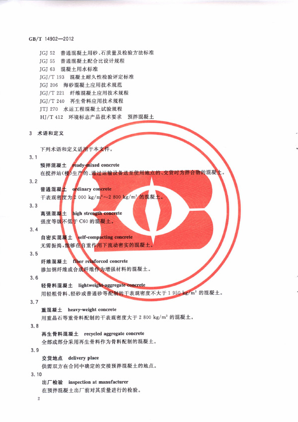 預拌混凝土是混凝土生產(chǎn)由粗放型生產(chǎn)向集約化大生產(chǎn)的轉(zhuǎn)變,實現(xiàn)了混凝土生產(chǎn)的專業(yè)化、商品化和社會化。本標準適用于攪拌站(樓)生產(chǎn)的預拌混凝土,不包括交貨后的混凝土的澆筑、振搗和養(yǎng)護。