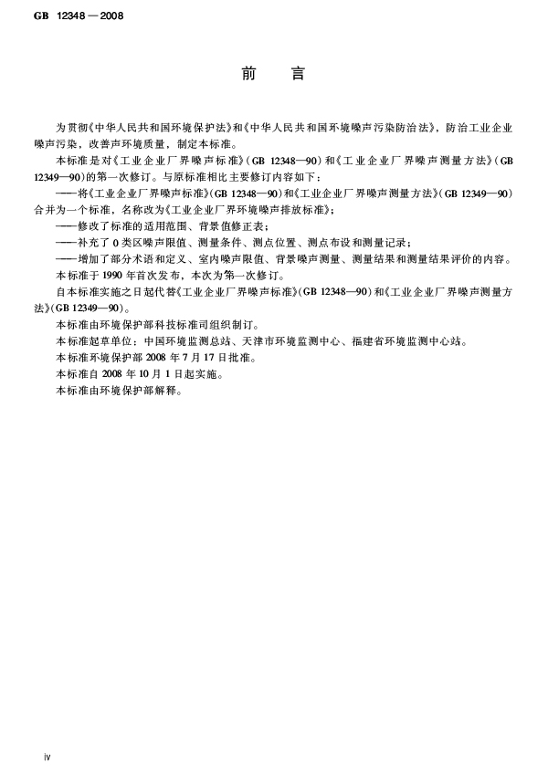 本標(biāo)準(zhǔn)規(guī)定了工業(yè)企業(yè)和固定設(shè)備廠界環(huán)境噪聲排放限值及其測(cè)量方法。本標(biāo)準(zhǔn)適用于工業(yè)企業(yè)噪聲排放的管理、評(píng)價(jià)及控制。